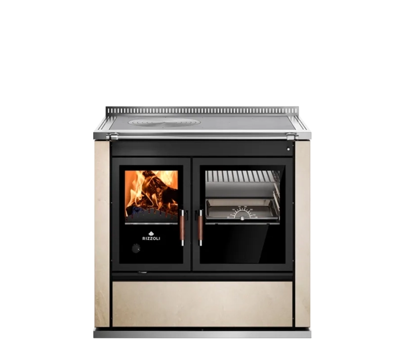 Die Holzherde dieser Serie bieten dank der Feuerraumtür mit Doppelverglasung und der Shiny Glass®-Technologie sowie einer geräumigen Brennkammer, die vollständig mit feuerfestem Material ausgekleidet ist, einen beeindruckenden Blick auf das Feuer. Zudem verfügen sie über einen großzügigen, beleuchteten Edelstahl-Backofen. Die besondere Feinsteinzeugverkleidung (Gres) macht die Herde perfekt für eine freistehende Installation und verleiht ihnen einen modernen, ansprechenden Stil mit reichen Farb- und Materialeffekten, die das Edelstahl zur Geltung bringen und die Wärme optimal abgeben. Die Holzherde sind mit einer praktischen Herdstange vorne sowie einer großzügigen Holzlade ausgestattet.